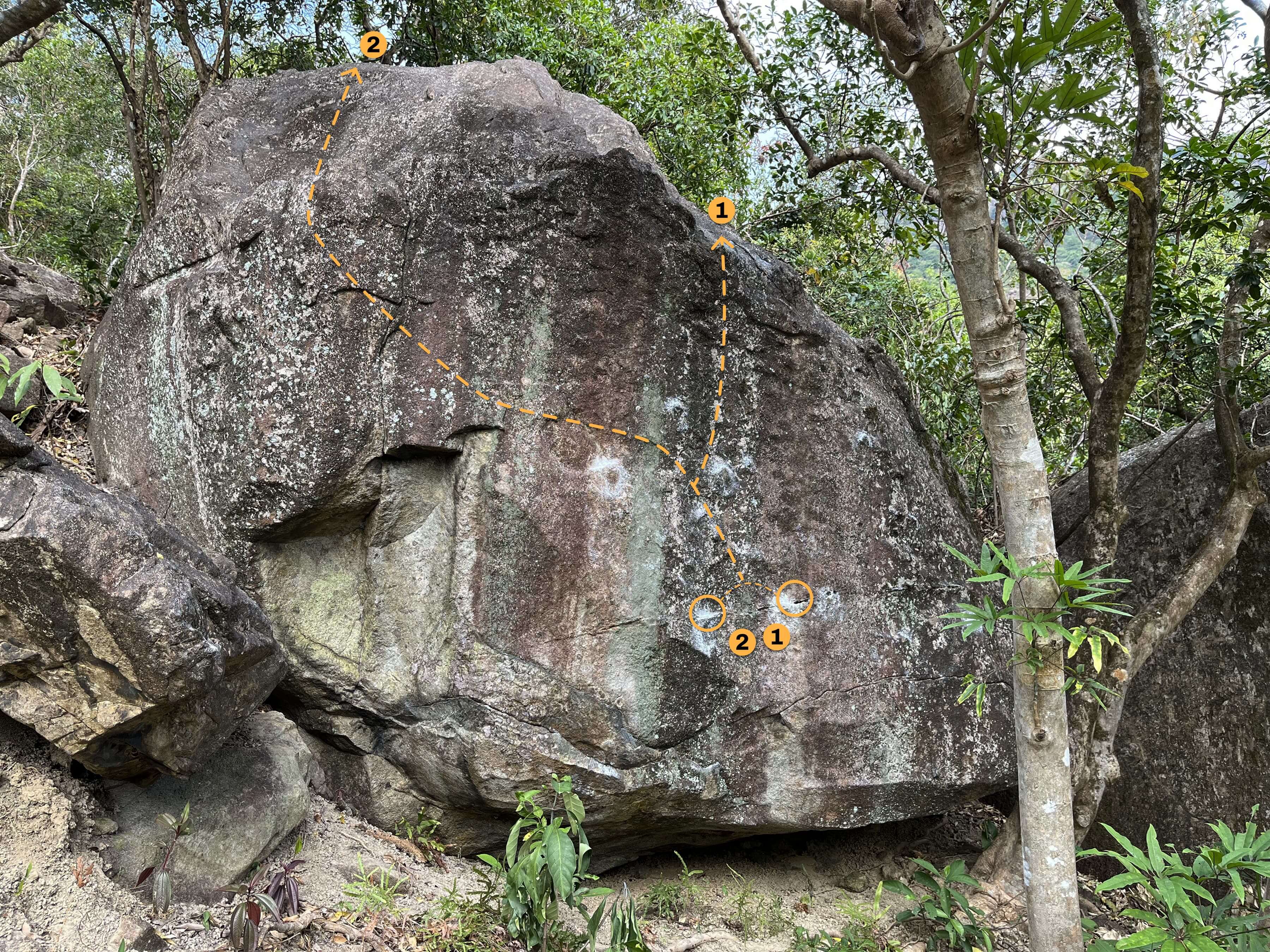 Start on a left hand crimp and a right hand mushroom like hold, climb up using some slopery crimps and you can use a right hand far away crimp before reaching the top jug OR do a dynamic move to the top jug.