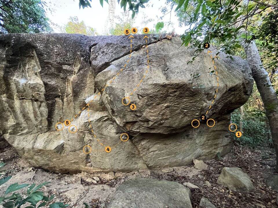 There are total 9 routes in the Sunset Forest Bouldering Zone 4. The boulder problems are graded V3 - project and rated with stars, we recommend you to come and try these problems.