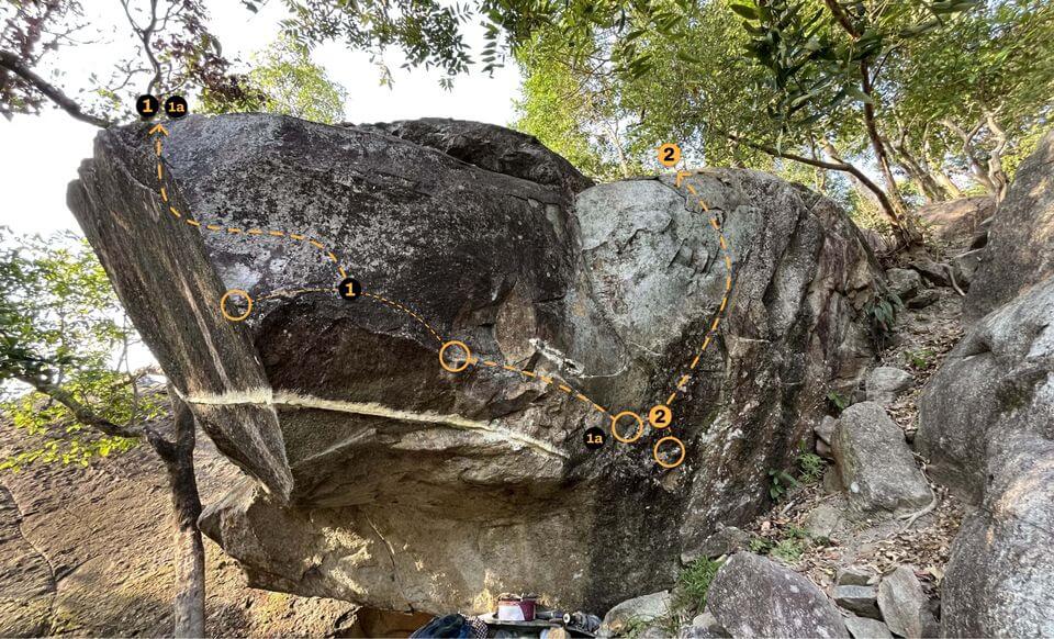 There are total 32 routes in the Sunset Forest Bouldering Zone 8. The boulder problems are graded V0 - project and rated with stars, we recommend you to come and try these problems.